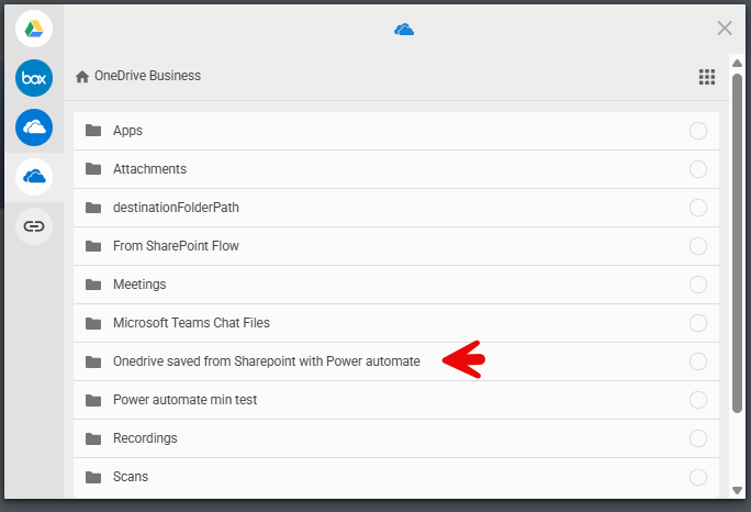 The upload from cloud option connects to OneDrive for Business. This allows you to login to your Microsoft 365 account to connect to OneDrive. This does not provide direct access to SharePoint folders.